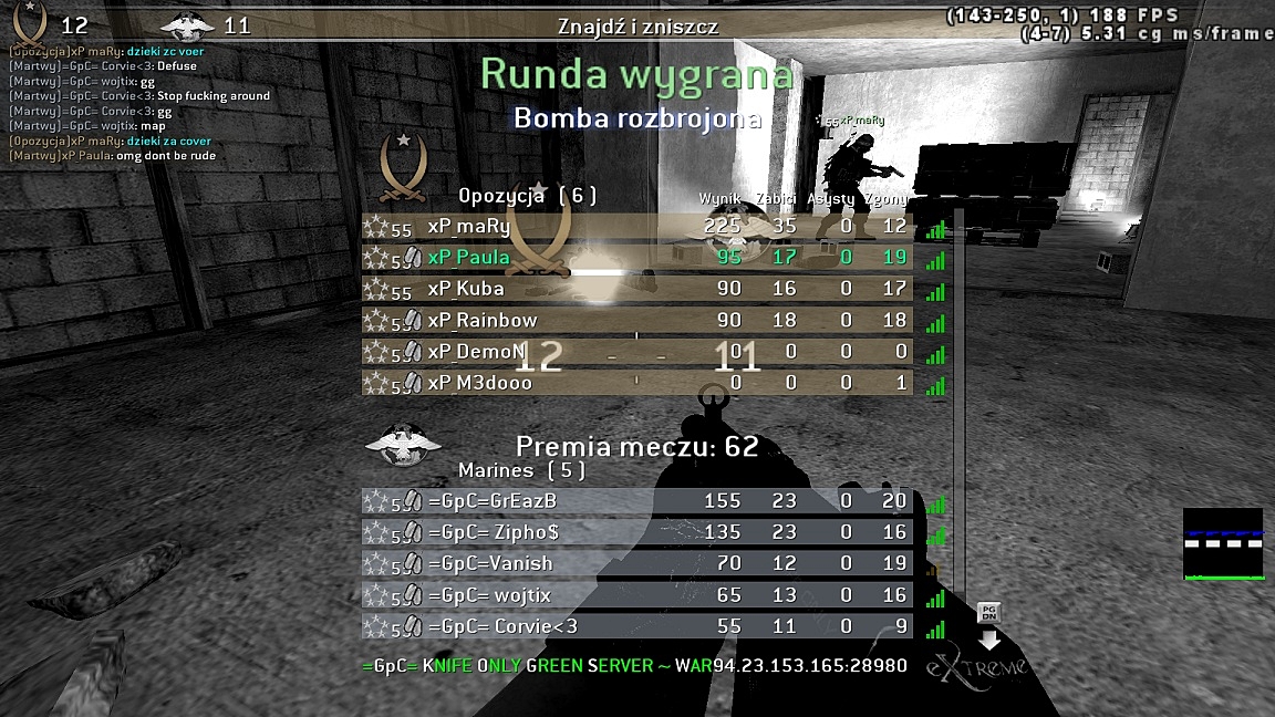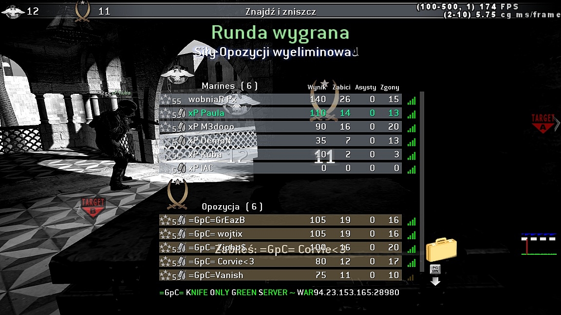 Hello again :P. Second or third war today, this time with =GpC= community. Quite hard game, we won three maps, but the opponents did a good job, worked togheter. Two times we almost lost, there was 11:11 situation. So proud of my boys <33. They played so nice, congratulations, Gents. Thank you for the war and see you soon c(: