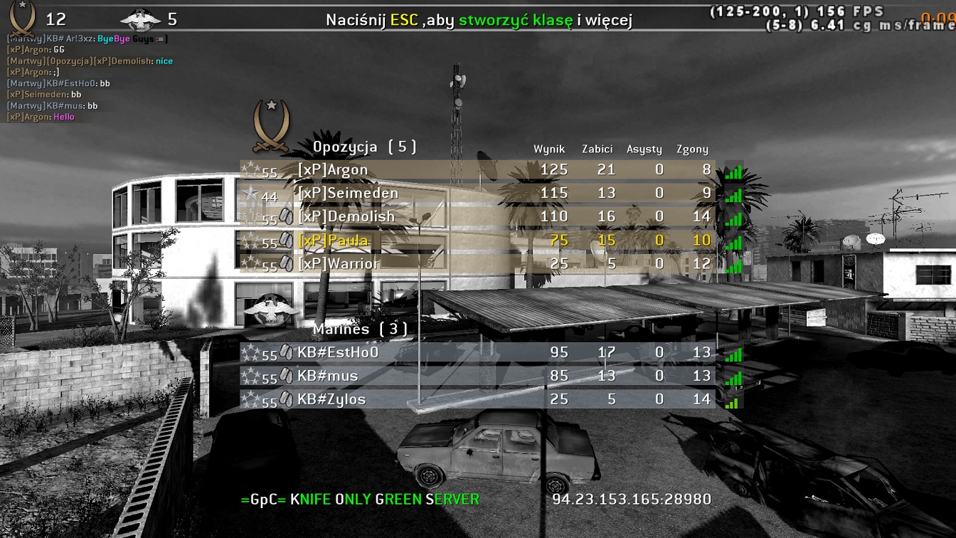 Dzisiaj odbyła się wojna z klanem KB#. Zagraliśmy dwie mapy ze zmiennym składem 4x4 i 5x5. Wygrana pierwszej mapy sprawiła nam sporo kłopotu, z drugą lepiej sobie poradziliśmy ;). Jak na początkujący klan, trzeba przyznać - byliśmy zajebiści. (I teraz mnie zjedziecie, bo się "brzydko wyrażam", ale kij). Zintegrowaliśmy się, zyskaliśmy kolejnego klanowicza (Warrior,Witamy!), i ogółem - gicior. Dziękuję za uwagę, Paula WYNIKI [niestety tylko z drugiej mapy, bo o pierwszej zapomniałam] Broadcast