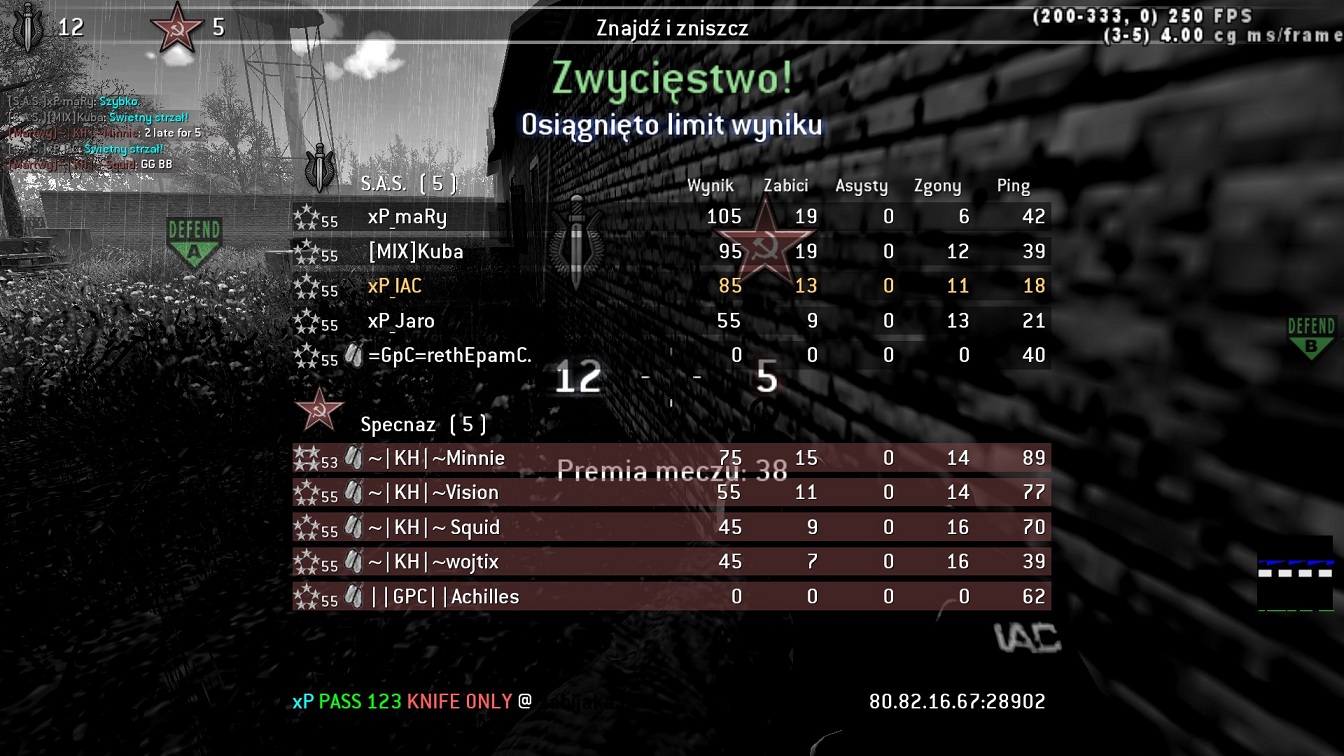 Recently we played a war with Knifing Hunters.We played four maps and won all of them so I think it was one of the best cws we played. This war was quite different, IAC leaded us using DR tactic which brought success as you can see from the results. Everyone did nice job there :). Thanks for the war and see you soon.