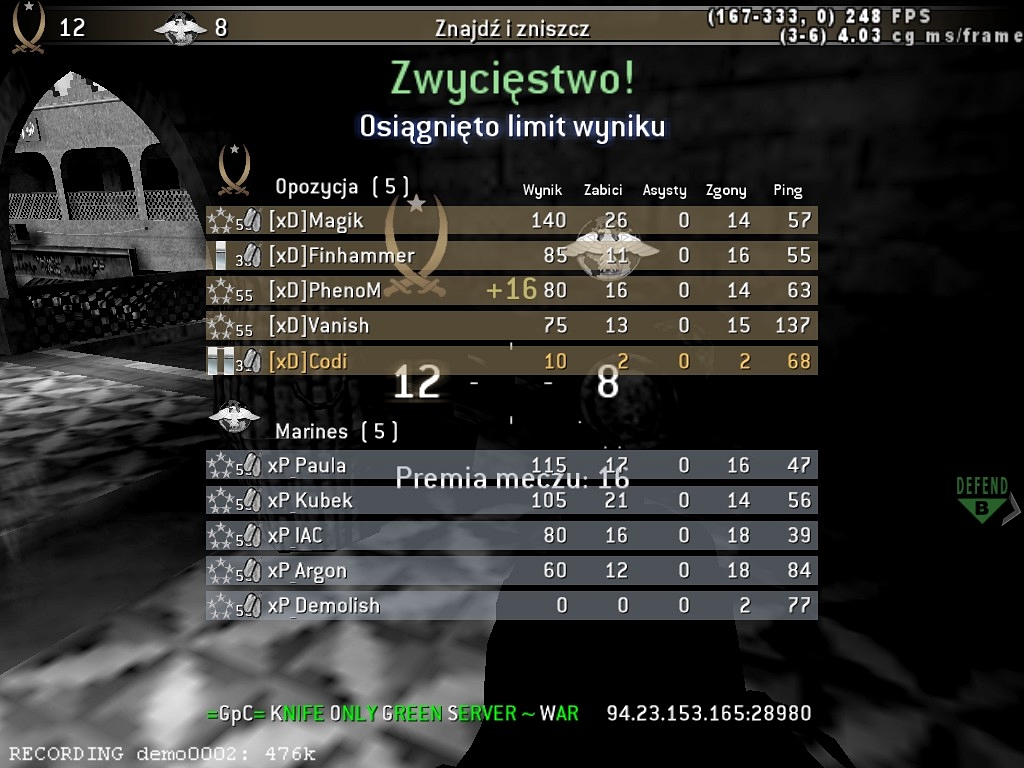Hello We played a nice war today with [xD] clan. [xD] won 2:1, good teamwork :). We had a chance to win on Strike, but we screwed it up :P. Well, it happens. Hopefully next time we will be more organized and successful. Good war, thanks to everybody who played, see ya next time^^.