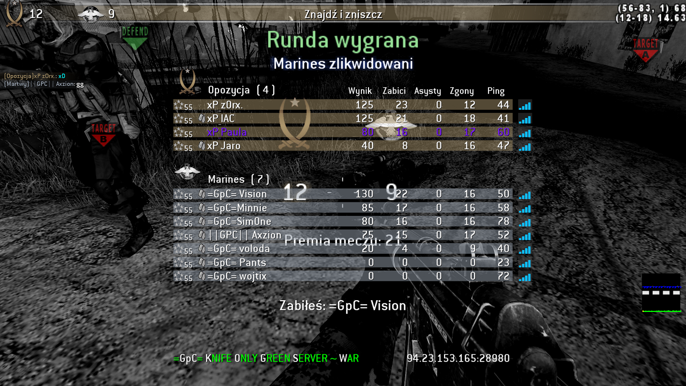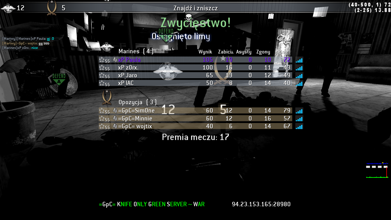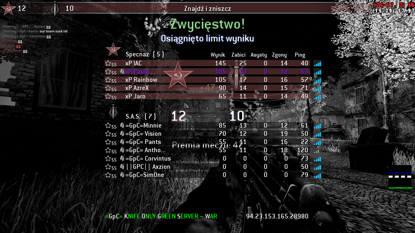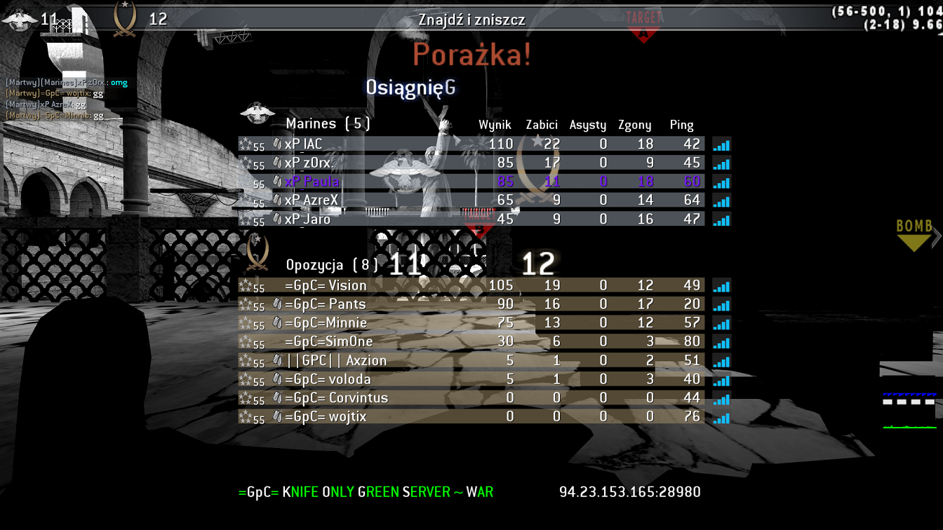 Yesterday we played a nice cw with GpC. We played 4 maps. The final result was 3:1 for our clan. It was quite even game, good knifers in both teams. Nice to see the knifing community grows up so fast :D. Many, many new players, harder to game with pros. Thanks for the war, looking forward for the next one